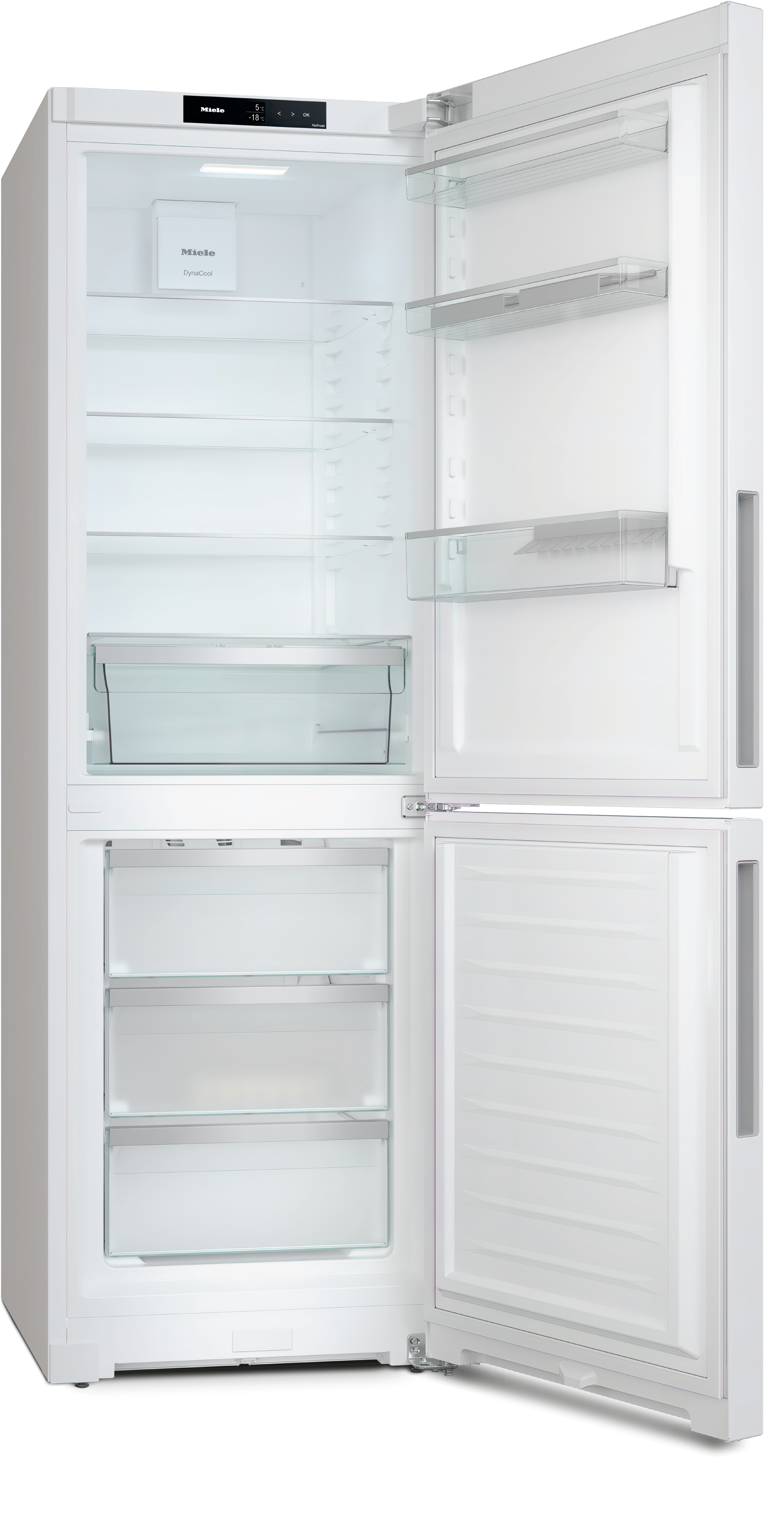 Отдельно стоящая комбинация холодильника с морозильной камерой с функциями DailyFresh, NoFrost и ComfortClean для высокого уровня комфорта.