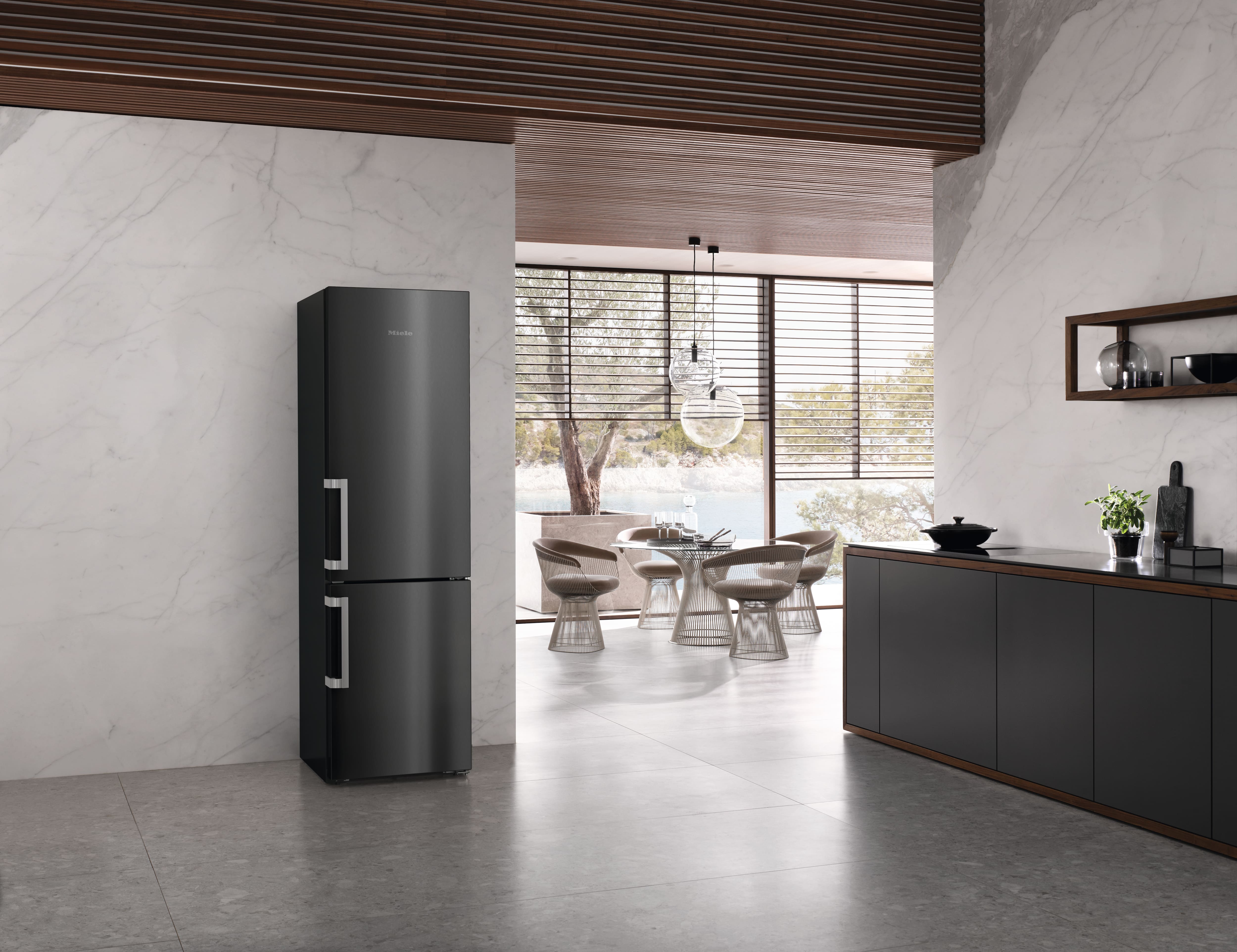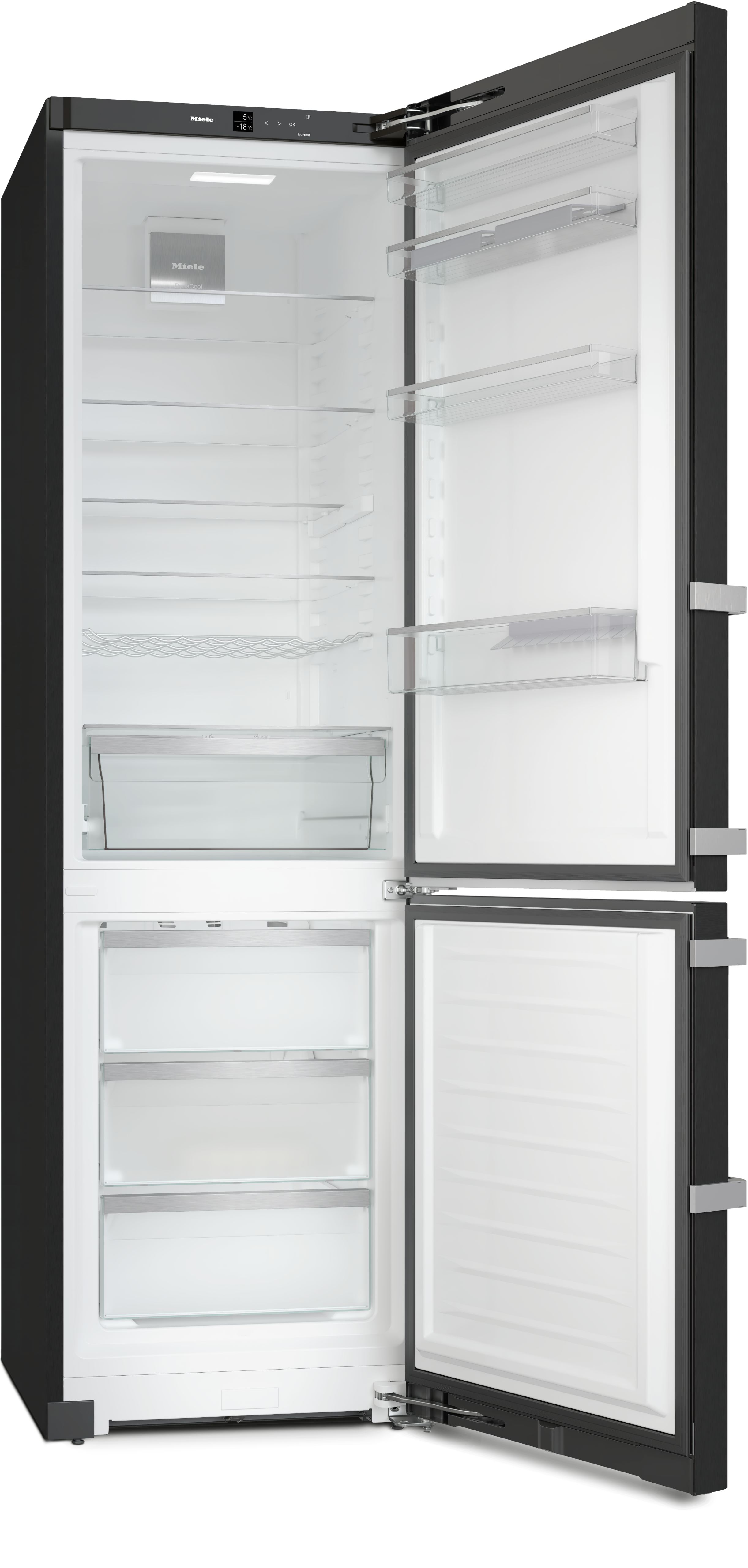 Отдельно стоящая комбинация холодильника с морозильной камерой с функциями DailyFresh, NoFrost, DynaCool и дополнительным удобством.