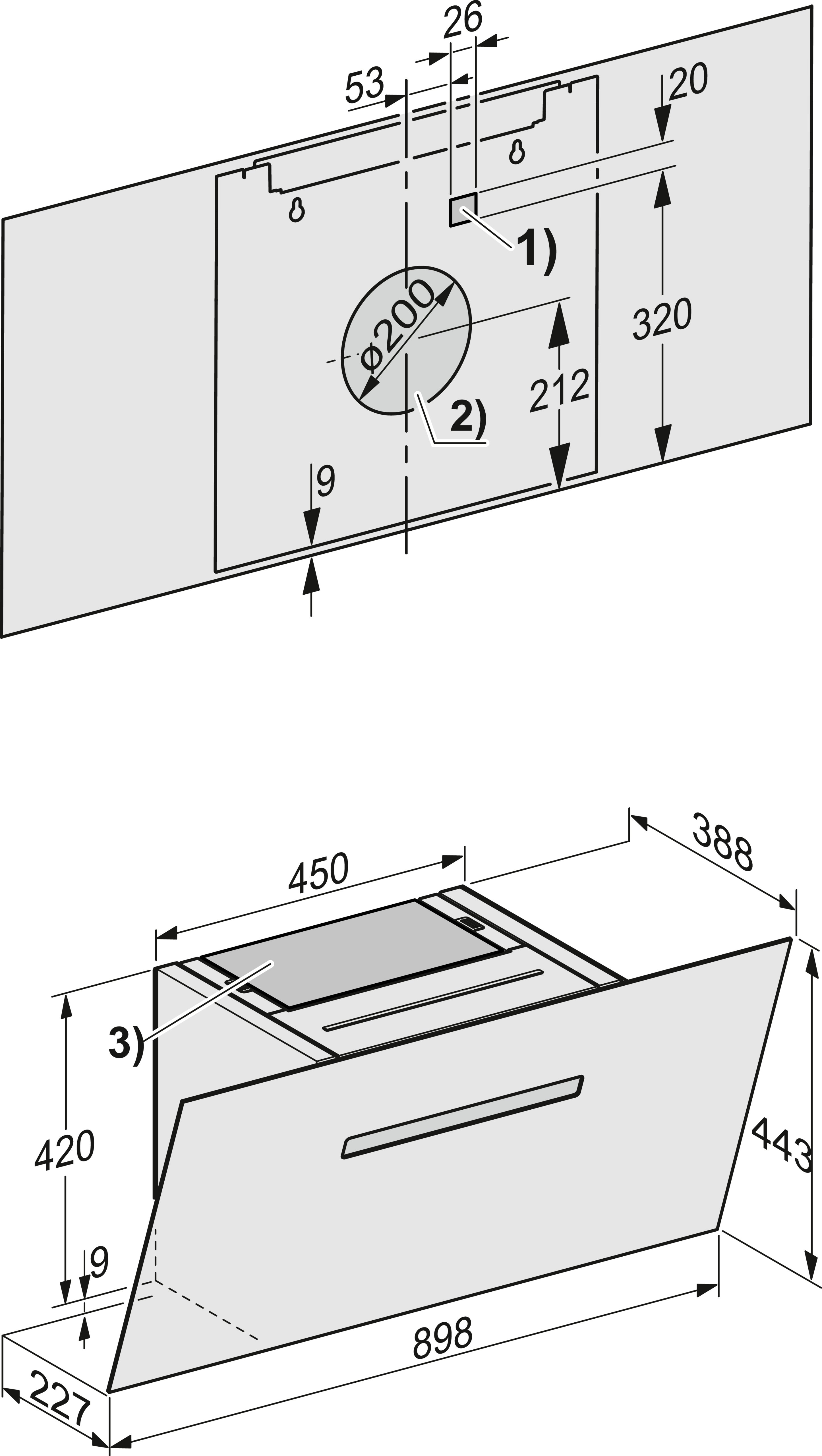 Настенная вытяжка с энергосберегающим светодиодным освещением и элегантным сенсорным управлением.
