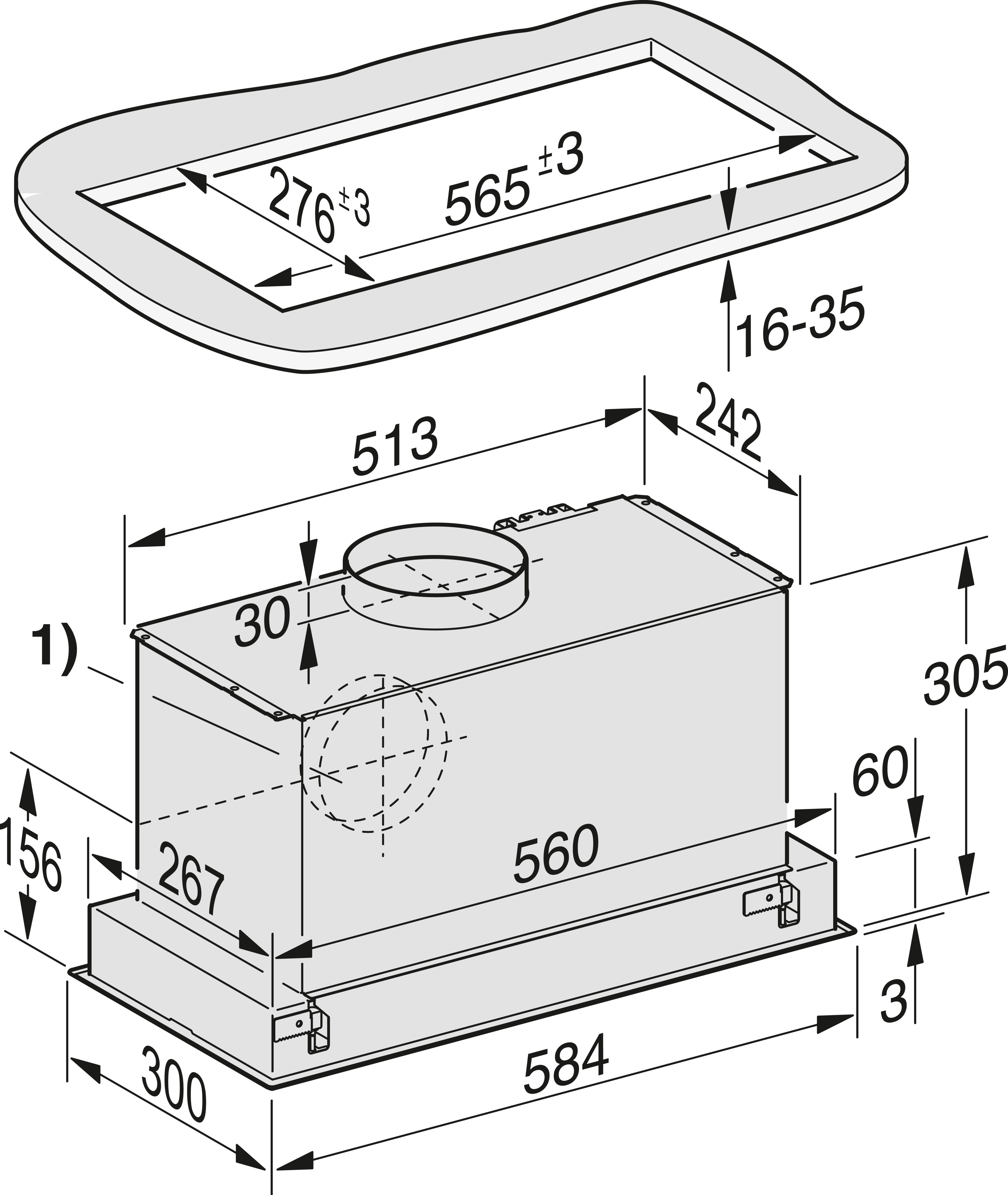 Индивидуальный дизайн – полное встраивание в 580 mm шириной