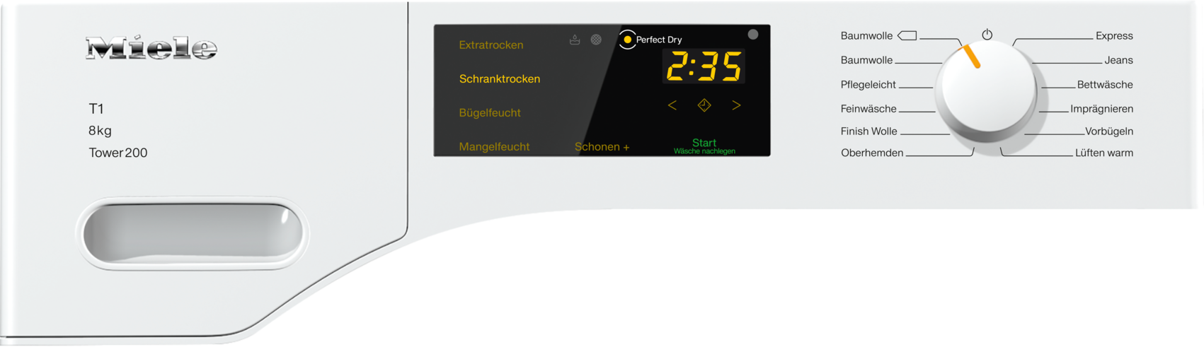 Сушильная машина с тепловым насосом T1: с A+++ и EcoSpeed для более быстрой сушки и максимальной энергоэффективности.
