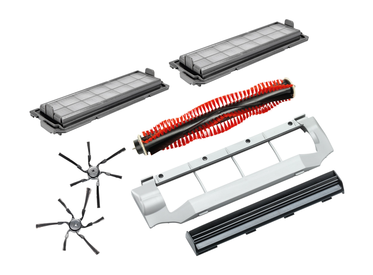 - 1 пара боковых щеток, 1 турбощетка, 1 уплотнительная планка, 2 фильтра AirClean Plus